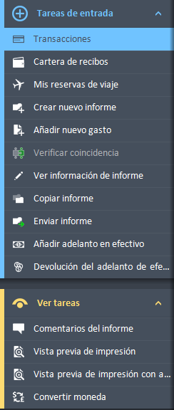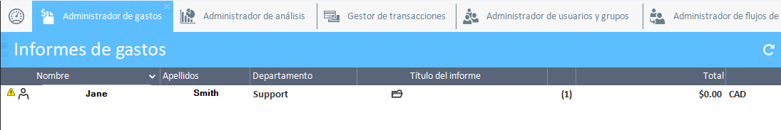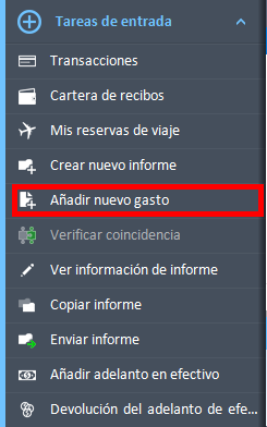Una vez que hagas clic en él, la barra de navegación mostrará todas las opciones disponibles para el informe de gastos seleccionado, incluyendo Agregar nuevo gasto.