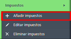 Luego haz clic en la opción Agregar impuesto en el menú de navegación del lado izquierdo Impuestos: