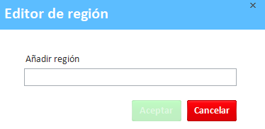 Se abrirá la ventana Editor de región para permitirte ingresar el nombre de la región que deseas agregar/crear.