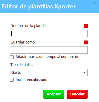 La ventana Editor de plantilla de Xporter se abrirá: