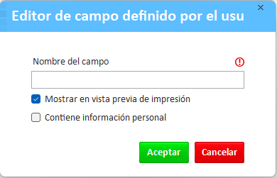 Esto abrirá la ventana Editor de campo definido por el usuario: