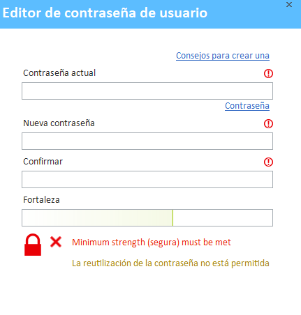 Nota: No puedes reutilizar una contraseña que hayas usado previamente.