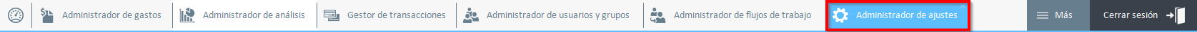 Para actualizar cualquiera de las notificaciones de informes de gastos de su organización, acceda al módulo Administrador de configuración en la parte superior de su pantalla.
