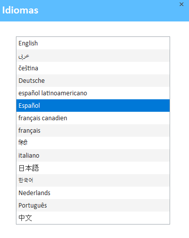 Cuando hagas clic en el idioma seleccionado, la ventana se cerrará automáticamente y toda la aplicación cambiará al idioma seleccionado.