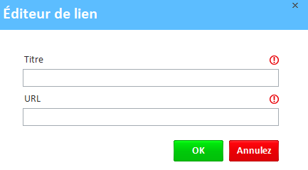 Cliquez sur l'option Ajouter un lien dans le menu, et la fenêtre Éditeur de lien s'ouvrira.