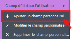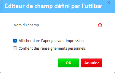 Cela ouvrira la fenêtre Éditeur de Champ Défini par l’Utilisateur: