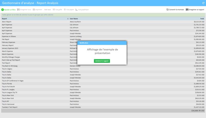 Pour accéder à la fonction de rapport, cliquez sur Gestionnaire d’analyse en haut de votre application ExpensePoint™.