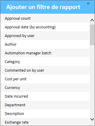 - Ajouter un filtre (Add Filter) – Les filtres sont un excellent moyen d’afficher uniquement les informations pertinentes pour votre tâche actuelle, rendant votre rapport plus efficace. Les options suivantes sont disponibles pour les filtres: