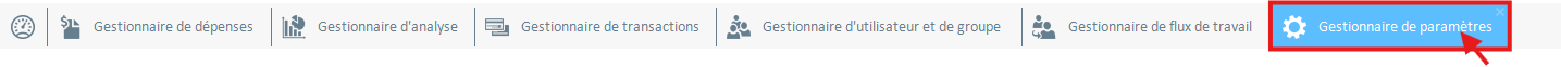 Pour afficher la liste des Sources Facturables disponibles dans votre système ExpensePoint™, accédez au module Gestionnaire de Paramètres en haut de votre écran.