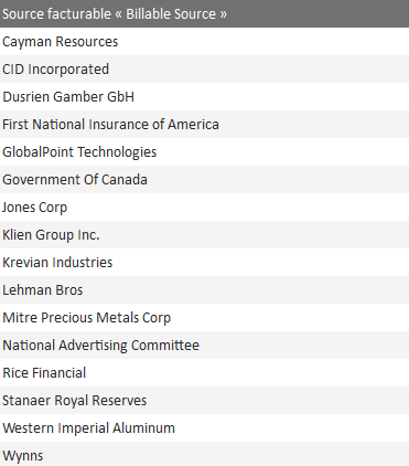 Cela affichera la liste de vos Sources Facturables disponibles.