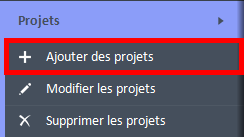 Ensuite, cliquez sur l'option Ajouter des projets dans le menu de navigation du côté gauche Projets: