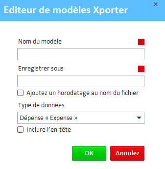 La fenêtre Éditeur de modèle Xporter s'ouvrira :
