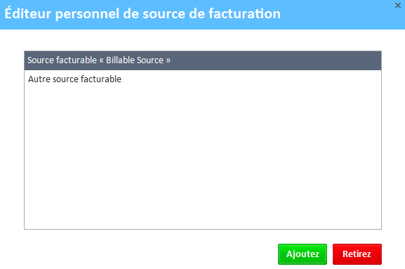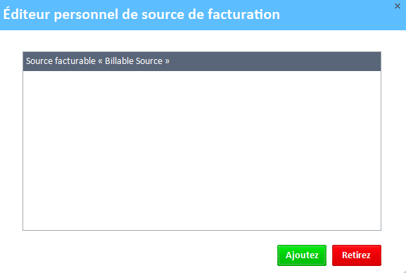 La fenêtre Éditeur de sources facturables personnelles s'affichera.