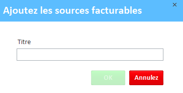 La fenêtre Ajouter des sources facturables s'ouvrira, demandant le titre de la source facturable.