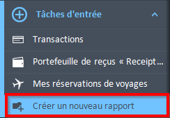 Une façon de créer un nouveau rapport de dépenses est d'aller à l'option Créer un nouveau rapport dans le menu de navigation Tâches d'entrée sur le côté gauche de l'écran.