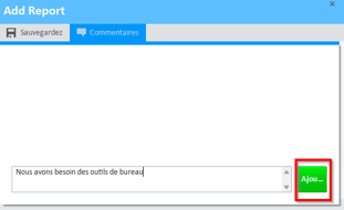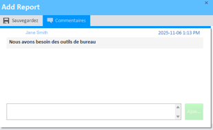 Si vous souhaitez ajouter des commentaires à ce rapport de dépenses, vous pouvez le faire en cliquant sur le bouton Commentaires dans le menu supérieur de l'écran Ajouter un rapport.