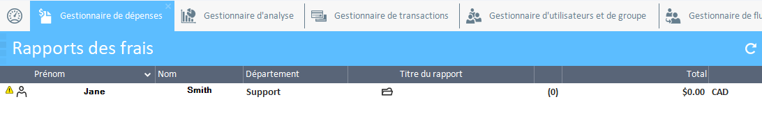 Une fois le rapport enregistré, vous devriez le voir dans votre espace de travail principal sous la section Rapports de dépenses.