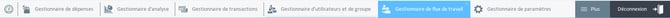 Pour accéder au Gestionnaire de flux de travail, appuyez dessus dans le menu supérieur de l'application ExpensePoint™.