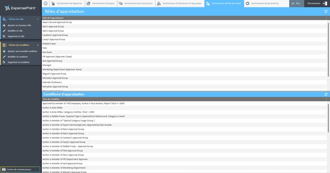 Le Gestionnaire de flux de travail vous permet de créer, modifier ou supprimer des rôles d'utilisateur, ainsi que de créer/modifier ou supprimer les conditions pour ces rôles.